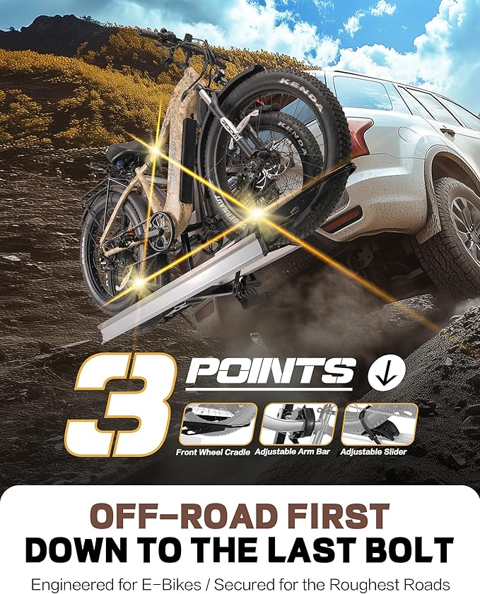 - DURABLE and SAFE: Young Electric bike rack is constructed with reinforced steel and aluminum which makes it durable and powerful enough to carry 2 bikes weighing 100 lbs each. Comes with 2-arm fix, patent secure wheel cradles and anti-wobble structure, that secure your E-bikes in place without swaying and knocking against vehicle.