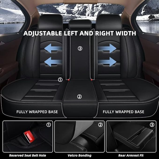 - ๐Easy Installation:Car seat covers full set each pack comes with 2 front seat covers and 3 back seat covers.Leather seat covers with chucks and hooks,you can fix the seat cover easily without worry of sliping.If have any questions,please feel to contact us for assistance.