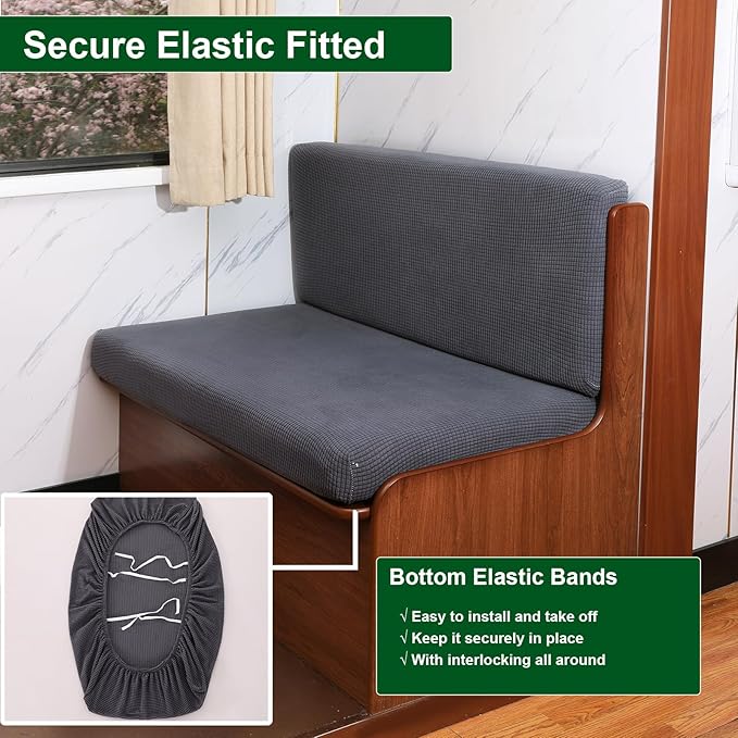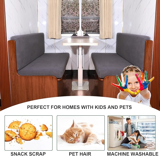 - Camper Bench Seat Slipcovers for Dinette Material: Made of 92% Polyester 8% Spandex premium soft microfiber which is stretchable, wrinkle-resistant, soft, comfortable and long-lasting. CRFATOP camper dinette cushion slipcovers offers a cozy and snug fit that feels like sitting on a cloud. They are super stretchy and providing ultimate protection for your RV cushions.