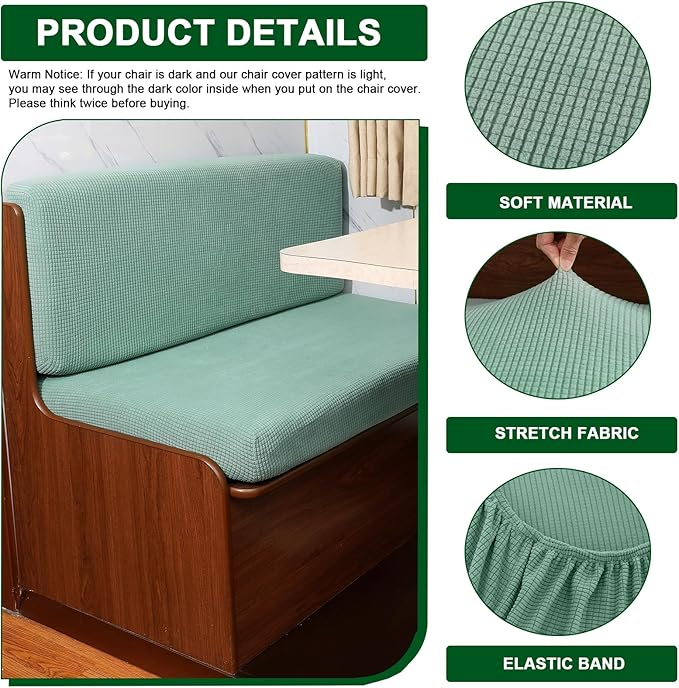 CRFATOP 2 Set RV Dinette Cushion Covers Jacquard Camper Cushion Slipcover Stretch 2 Seat Sofa Chair Cover Furniture Protector for RV Camper Car Bench 2 Backrest Covers & 2 Bench Covers,Green