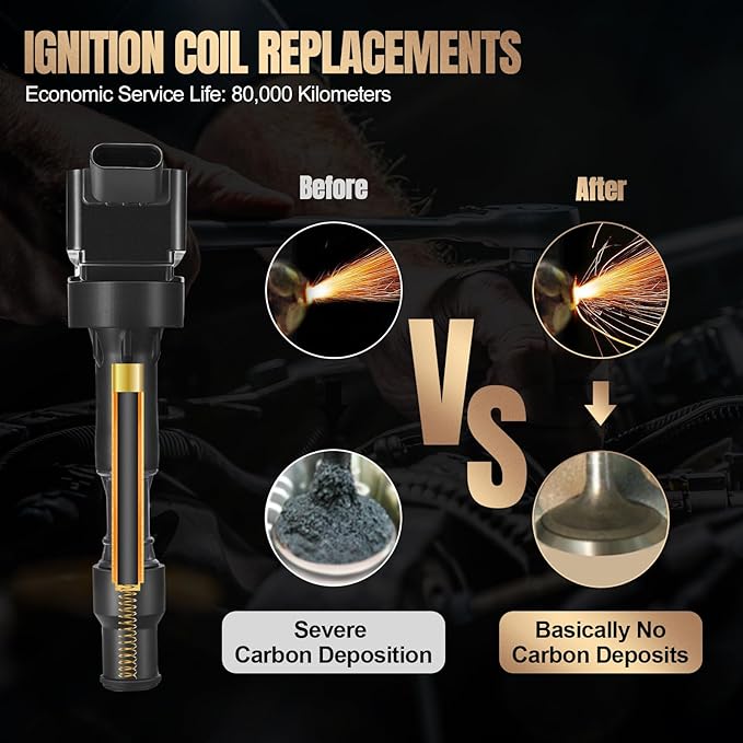 - 【Strict Quality Test】In order to solve common ignition system faults such as backfiring, misfiring, stalling, car shaking, engine jerking, poor idling, clogged spark plugs, poor fuel economy, check engine light illuminated etc. All ignition coil packs are tested under strict quality control to ensure that the coils can output high voltage stably and work reliably under operating conditions and throughout the engine speed range, which brings you a comfortable driving experience.