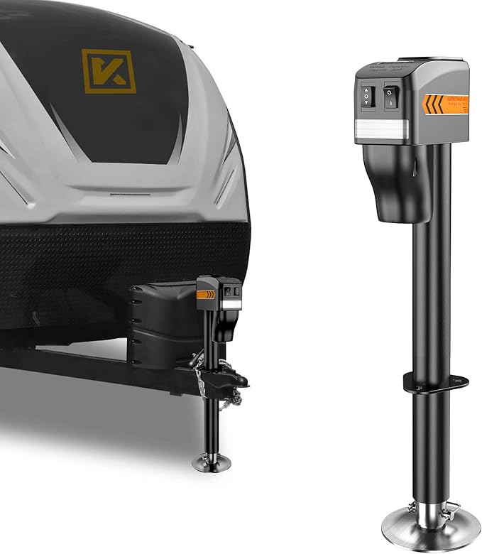 - 【Heavy-duty Load Capacity】The KYX Electric Trailer Jack is equipped with a powerful 12V DC motor that can easily handle a weight of 5000LBs, quickly raising or lowering your A-frame trailer to ensure an efficient and stable transportation experience