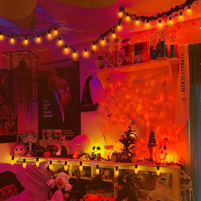 - ✨C9 Halloween Light Bulbs: C9 LED orange replacement bulbs are made from plastic, c9 christmas bulbs are shatterproof and can withstand accidental drops. led C9 orange replacement bulbs emits a bright and vivid light in classic Halloween colors, enhancing the spooky atmosphere of your decorations.