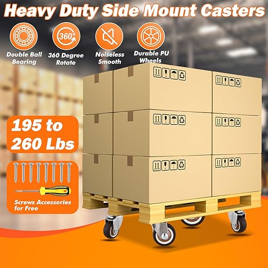 - No Noise: The four set of 1.25 inches industrial swivel casters are made of PU material. You can easily control the wheels and no noise when you move your items quiet and comfortable. In addition, these castors wheel sets are noiseless and don't leave marks on hardwood or other flat finished surfaces to protect your floors well.