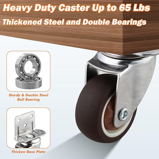 - Premium thermoplastic rubber Materials & 360 Degree Rotation: Each of the 1.25 inches small caster wheels are made from ant-skid and abrasion resistant materials that are sturdy constructed. You can glide the 1.25 inches caster wheels effortlessly on both wooden floors and carpet, from corners to a couple of doorways.
