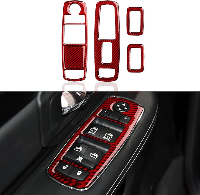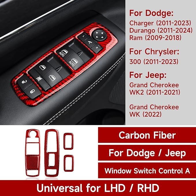 Window Switch Lift Control Decals for 2009-2018 Dodge Ram 1500 2500 3500/2011-2023 Charger/Chrysler 300/2011-2021 Jeep Grand Cherokee WK2 Accessories Carbon Fiber Stickers