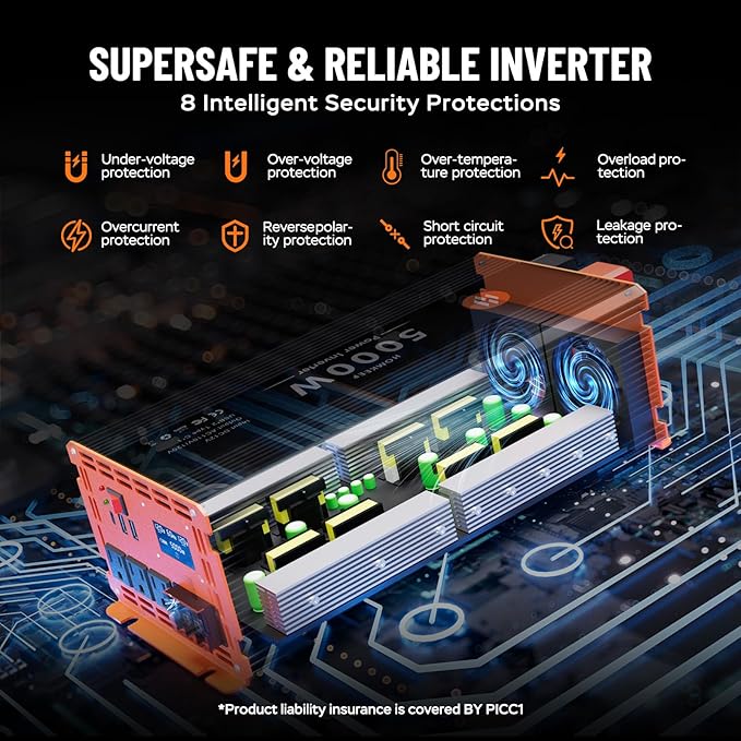 - 【Advanced 6-fold Protection】Homkeep car inverter includes undervoltage protection, overvoltage protection, overload protection, overheating protection, short circuit protection and reverse connection protection. Equipped with two smart fan cooling systems, it can protect and extend the life of your electronic products and appliances, such as TVs, ovens, lights, mobile phones and cameras.