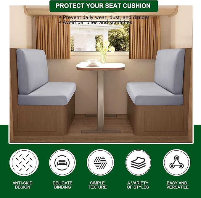 - Camper Bench Seat Slipcovers for Dinette Material: Made of 92% Polyester 8% Spandex premium soft microfiber which is stretchable, wrinkle-resistant, soft, comfortable and long-lasting. CRFATOP camper dinette cushion slipcovers offers a cozy and snug fit that feels like sitting on a cloud. They are super stretchy and providing ultimate protection for your RV cushions.