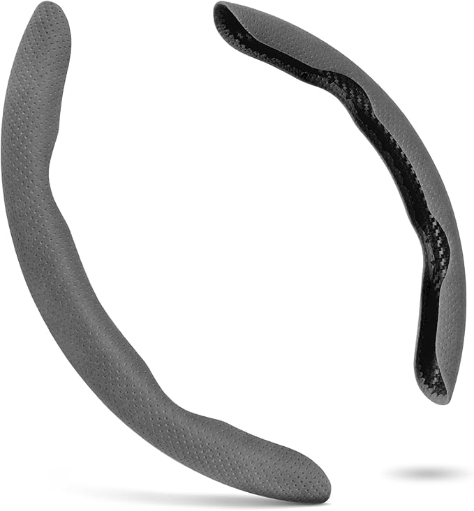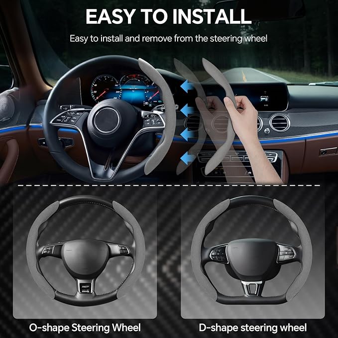- Split Design · Precision Fit for D-Shape & O-Shape Wheels: Two-piece split construction ensures smoother installation and precise alignment for both flat-bottom (D-shape) and standard (O-shape) steering wheels. Fits most medium-size steering wheels from 14.5 to 15 inches (about 37-38 cm), flexibly adapting to your car's interior. Flexible Alcantara edges wrap seamlessly, staying firm and steady through every turn for customized fit and stable control.