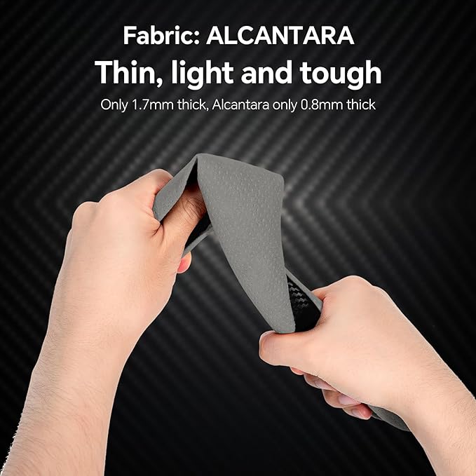 - Durable Finish · Lasting Freshness: High-density Alcantara surface resists fading, cracking, and surface wear over time. Unlike ordinary leather or suede covers, it maintains a refined matte texture and clean appearance even after months of daily driving.