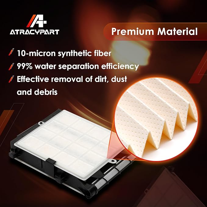 - 【Superior Filtration Efficiency】Featuring 10-micron synthetic fiber and 99% water separation efficiency. our diesel filters remove dirt, dust, and debris effectively. This top-tier filtration prevents engine damage and extends engine life, reducing the need for costly repairs and maintaining optimal engine performance.