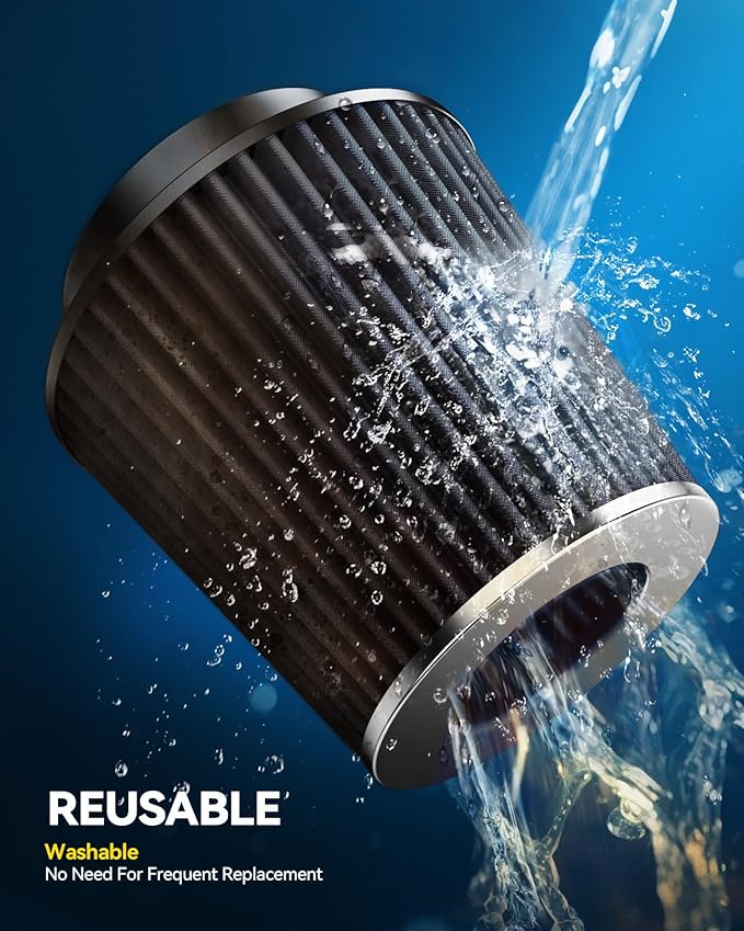 - 【REUSABLE DESIGN】 The reusable cold air intake filter with combines 2 layers of pleated, breathable cotton with filter oil to absorb dirt and dust particles, allows clean air to continue to flow into your engine, requiring cleaning only once every 100,000 miles under normal highway driving conditions