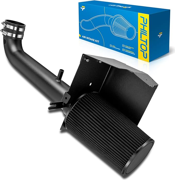 - 【STURDY MATERIAL】 Sturdy aluminum cold air intake kit with filter tubes and custom heat shields, mandrel-bent and powder-coated aluminum intake tubes help increase the amount of air flowing to your engine, while heat shields help protect the intake air from the high temperatures in the engine compartment