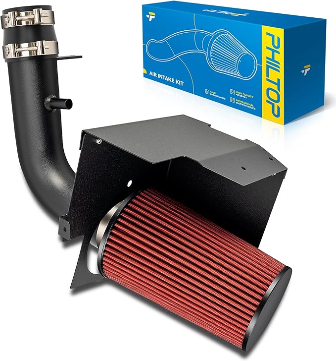 - 【STURDY MATERIAL】 Sturdy aluminum cold air intake kit with filter tubes and custom heat shields, mandrel-bent and powder-coated aluminum intake tubes help increase the amount of air flowing to your engine, while heat shields help protect the intake air from the high temperatures in the engine compartment