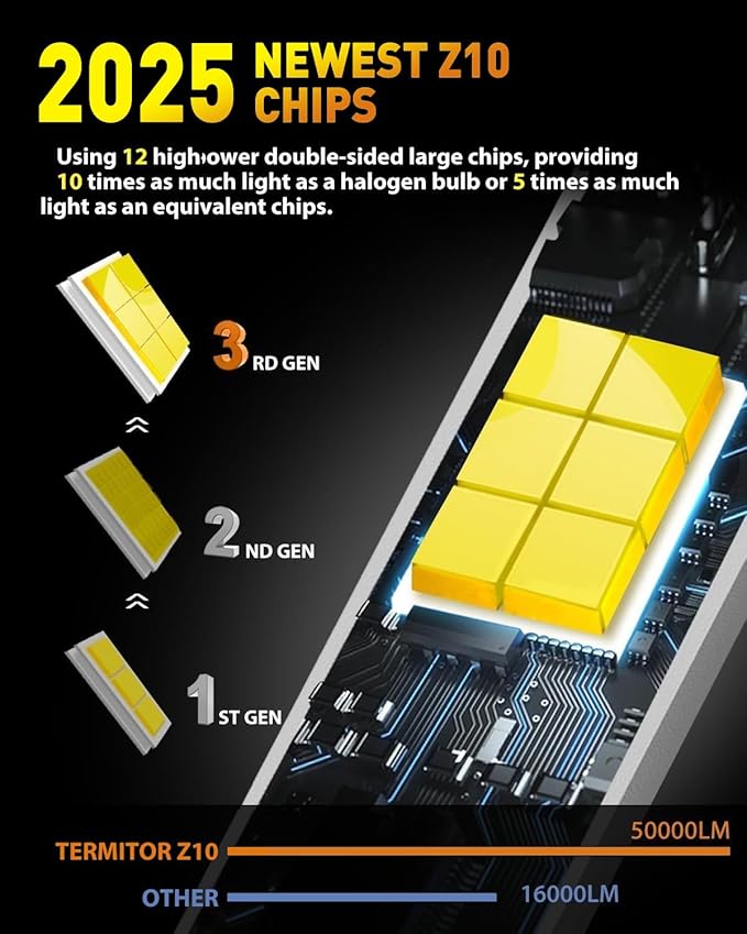 - 12X Brighter - Newly Enhanced: The Termitor H11/H9 Bulbs feature 24 high-performance chips, delivering up to 12 times the brightness of standard halogen bulbs. Upgrade your nighttime driving experience by replacing dim, yellow stock bulbs with Termitor H11/H9 fog lights, offering superior illumination and enhanced visibility with a crisp 6500K cool white light for optimal light transmission
