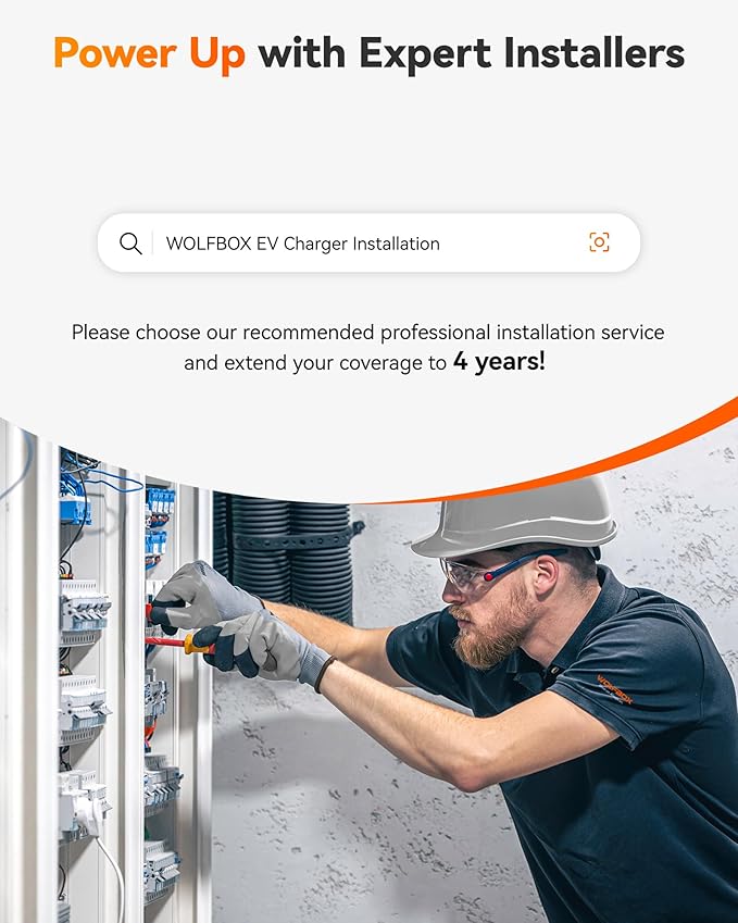 - Flexible Installation: The WOLFBOX electric car charger is easy to install and comes with an SAE J1772 connector, a 25ft extension cable, an EV charger holder, and installation tools, suitable for both indoor and outdoor use. For your safety, please consult a professional electrician for installation.