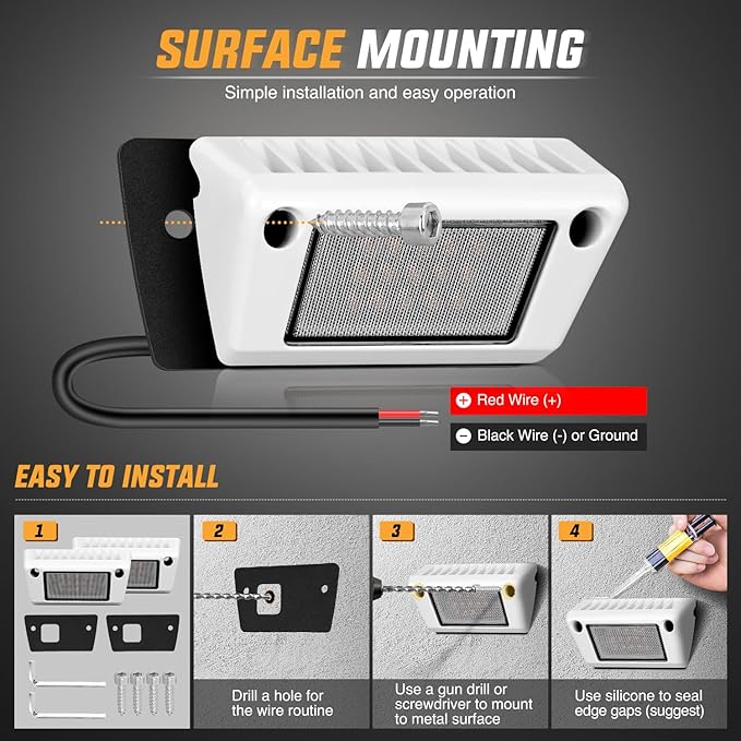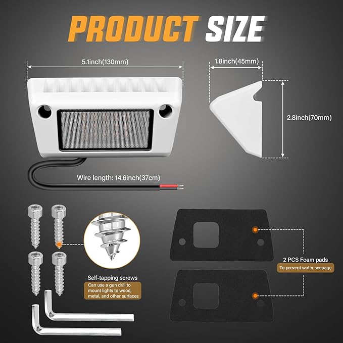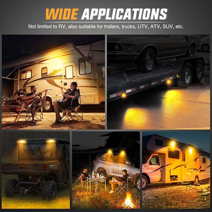 - Wide Application: Fits all 12V, and 24V vehicles, especially RVs, campers, and travel trailers, also suitable for toy haulers, tractor-trailers, cabinets, campers, motorhomes, marine boats, SUV roof racks, fire truck, and can even be mounted to the undercarriage of your vehicle, RV outside lights, RV porch light, food truck lights, roof rack lights, led scene light and cargo trailer lights, etc