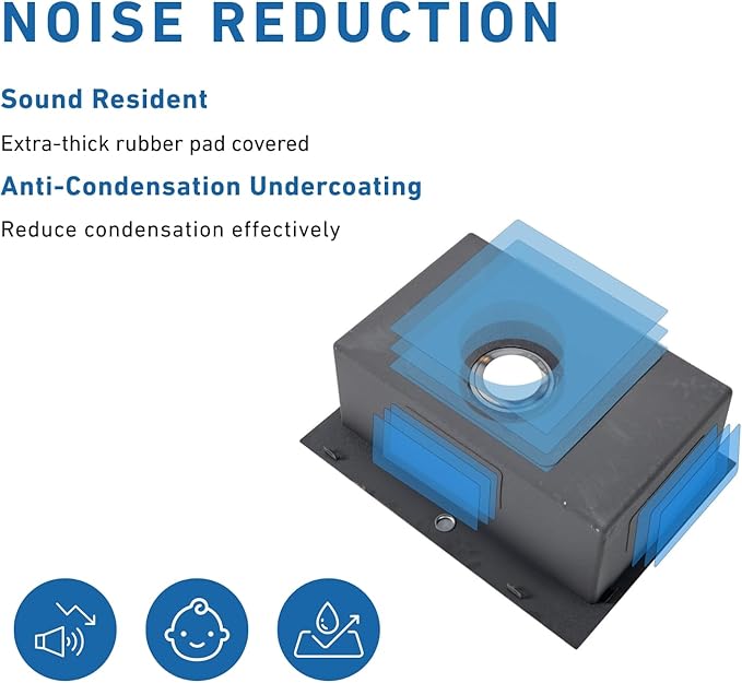 - 【Anti-condensation Soundproof Coating】: Anti-condensation coating effectively prevents excessive temperature difference and protects the box from moisture. Rubber mute pad absorbs sound from the sound source and effectively reduces water flow noise.R10 Smooth curved surface is safe and easy to clean.