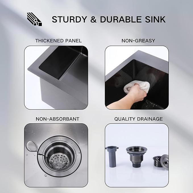 - High Quality Material: The black drop in bar sink is constructed with T304 stainless steel TRU16 real 16 Gauge for highly Corrosion and dent resistance, Black Nano finished for durable, anti-rust, anti-scratch and anti-collision.