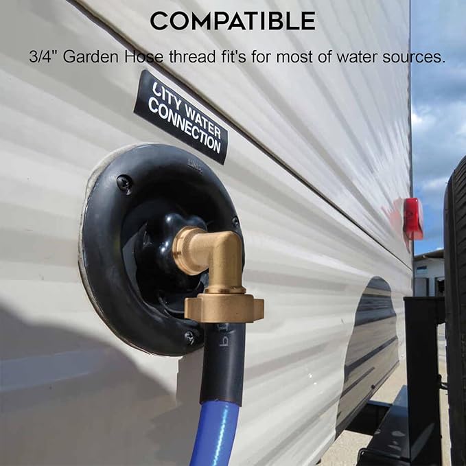 - 【Compatibility】Rv 90 Degree Water Hose Elbow: 3/4" Garden Hose Elbow -3/4" garden hose threads,male to female connection and all Fits standard water hose connections, the elbow is widely used in RV, washing machine, faucet, etc.