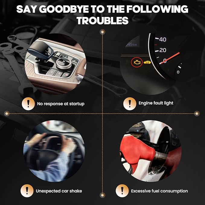 - [RESOLVES COMMON IGNITION SYSTEM ISSUES]: HMJXF Ignition coils are effective in solving common problems such as backfiring, misfiring, stalling, engine shaking and rough idling. They also enhance power output for peak engine performance. Additionally, these coils monitor the check engine light for circuit faults and severe stalling.