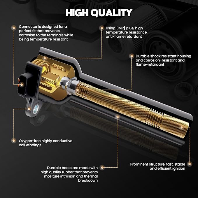 - [OE STANDARD]: All of the HMJXF Ignition Coils are purpose-built for both original equipment and replacement applications. Each component undergoes meticulous craftsmanship to match and improve upon the OE design, ensuring effortless installation. These coils deliver exceptional performance and reliability, operating flawlessly in all conditions and across the entire engine speed range. They guarantee optimal spark performance for your engine.