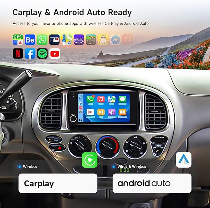 - 【Apple CarPlay and Android Auto】Enjoy wireless CarPlay and wired/wireless Android Auto with Bluetooth 5.0 for quick and easy connection. Just talk to Siri/Hey Google or touch the display to get directions from your phone's map, make calls, listen to voicemails, send and receive text messages, and listen to your favorite music, all while keeping your focus on the road.