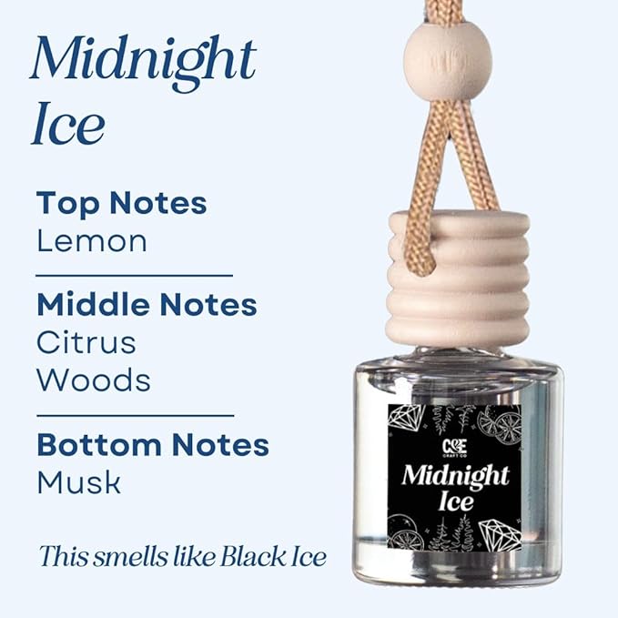 CANDECraftCo Car Air Hanging Fragrance Oil, Car Auto Freshener for Essential Oils, Scents Fragrance Aromatherapy Automobile Diffuser, Long Lasting (Tuscan Leather & Midnight Ice)