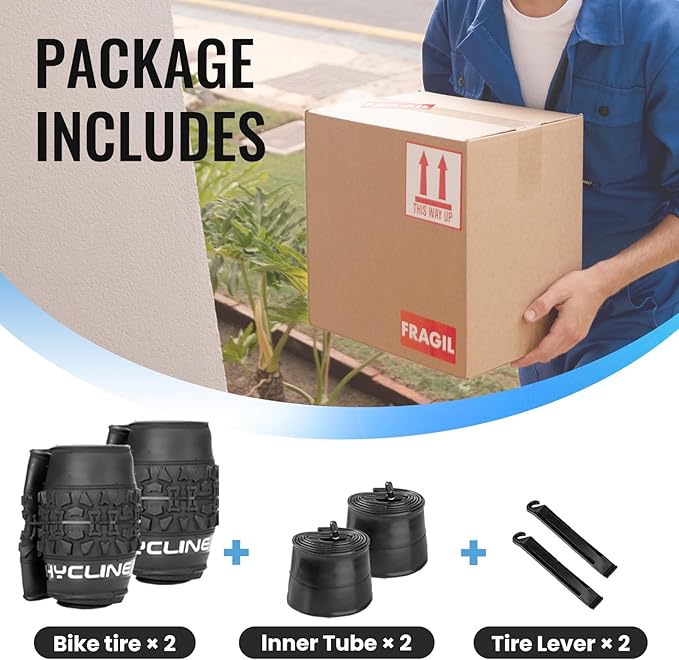 - Hycline Ebike replacement fat tires set package includes 2-pack tires,2-pack inner tubes, and 2-tire levers.