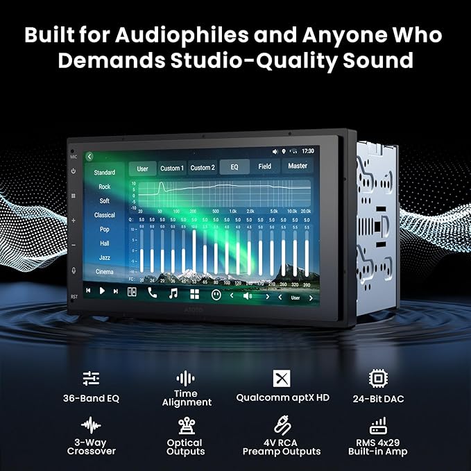 - Pro-Grade Audio with DSP & SCVC: Integrated DSP, time alignment, and 36-band EQ for professional-grade sound tuning, multiple sound presets lets you customise audio for rich, immersive in-car sound. The phone link supports wired/wireless Android Auto and CarPlay. X10's system volume adjusts automatically with vehicle speed, compensating for road and wind noise. Enjoy seamless connectivity and enhanced functionality with X10.