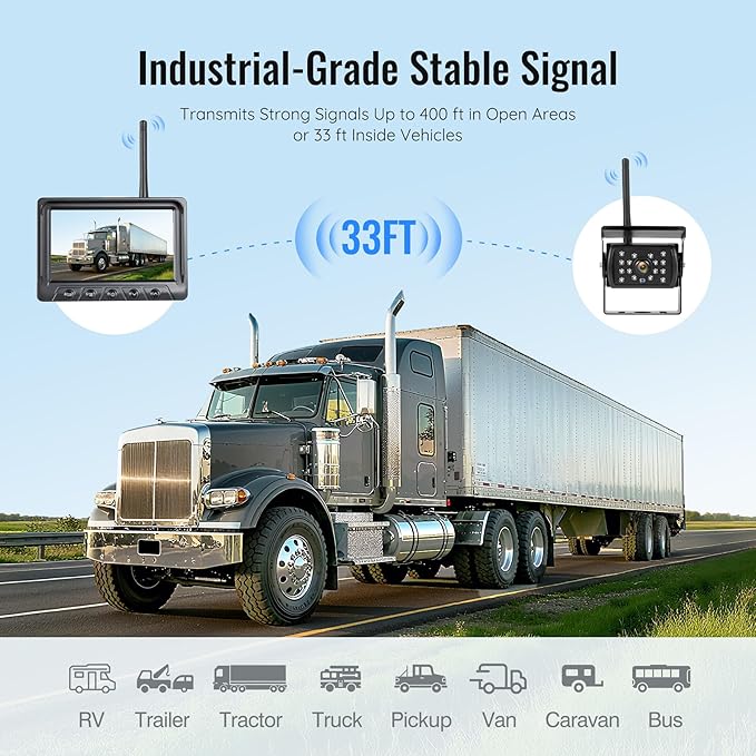 - Real-Time Digital Wireless Signal – No Lag, No Interference: The backup camera experiences real-time video transmission with the latest frequency-hopping technology. The wireless signal is fast, stable, and free from interference from other devices, ensuring instant video feedback as you reverse, park, or drive.