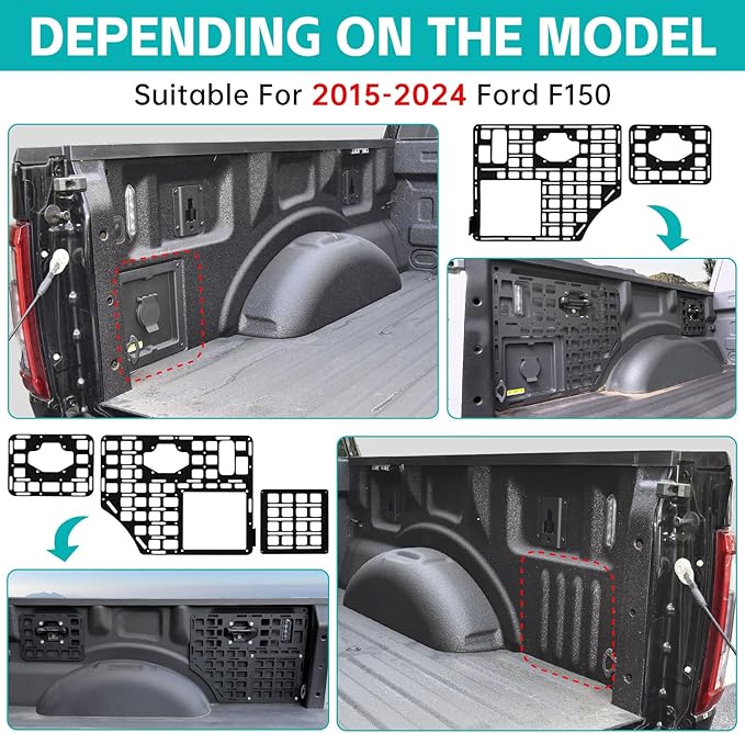 - 【Perfect Fit for 2015-2025 Ford F150】Our truck molle panel custom crafted for 5.5ft F150 beds 2015-2025 models. Please double-check your truck’s year and model before ordering.