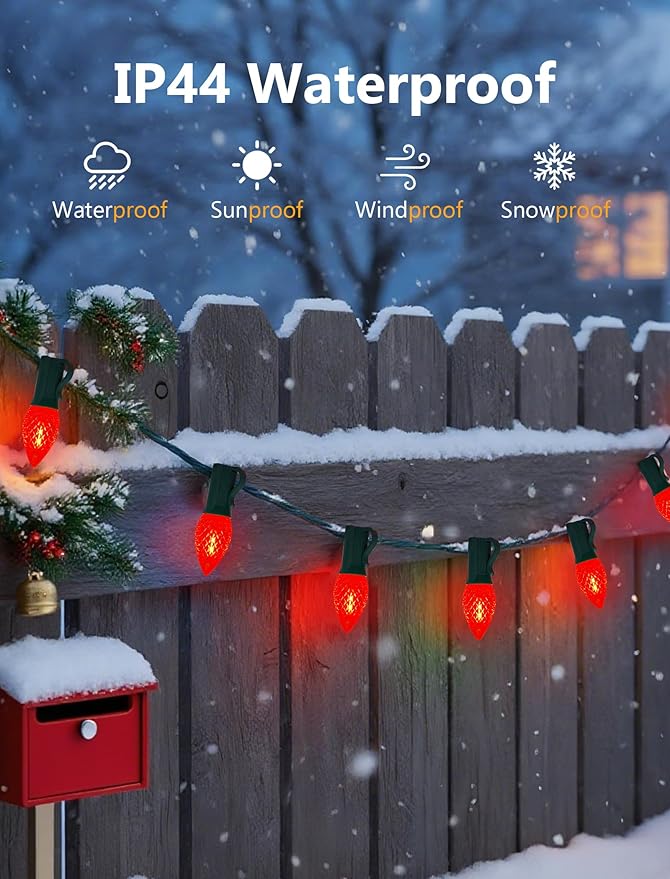 - Weather-Resistant & Safe: Christmas outdoor light bulbs UL-listed for safety, c7 red christmas string light bulbs is made from high-quality plastic with a shatterproof and weather-resistant design, IP44 waterproof rated, making them perfect for both indoor and outdoor use, making them ideal for year-round outdoor installations, add a playful and eerie vibe to your christmas decorations with these C7 LED red light bulbs.
