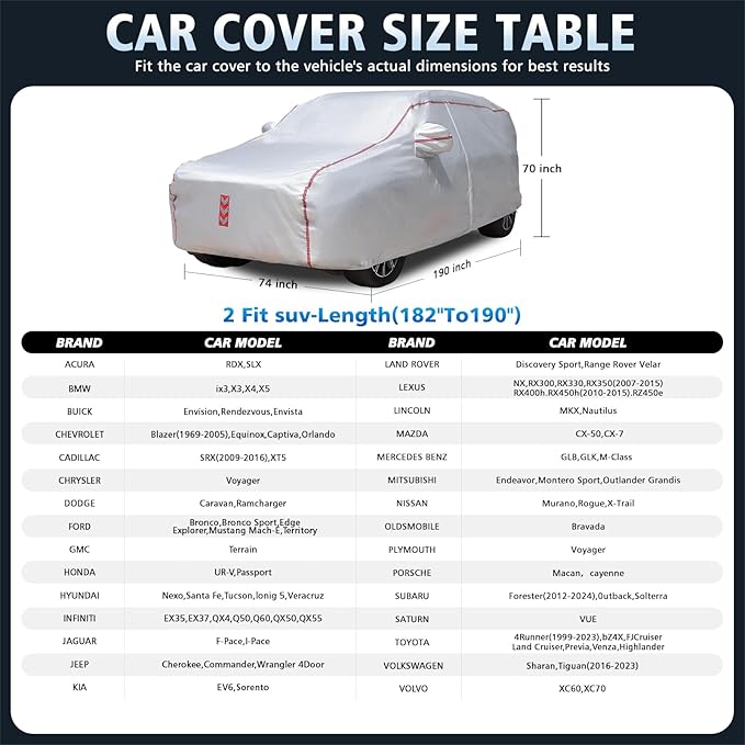 - 360° FIT 14-POINT FASTENING: our suv car cover features 14-point 360° wrap-around fastening with reinforced straps and elasticized hems for a windproof fit that car cover waterproof all weather to withstand harsh weather conditions