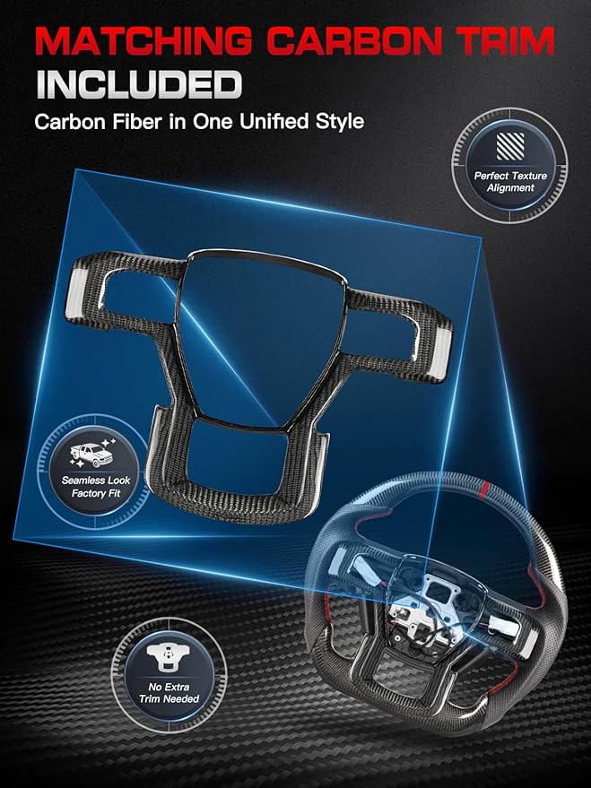 - 【Real Carbon Fiber Accent Trim Included】Includes a matching real carbon fiber accent piece, designed to align perfectly with the steering wheel for a seamless, premium look. The unified weave and glossy finish create a consistent style upgrade without the need for separate trim purchases.