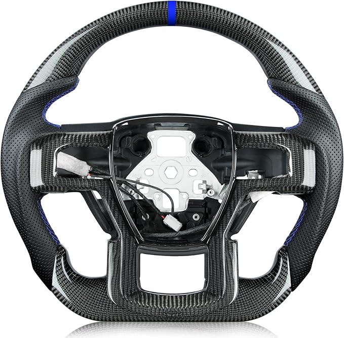 Steering Wheel for F150 Raptor 2017-2020 Real Carbon Fiber with Heated Blue Stripe&Stitching Black Nappa Leather D-shaped Flat-bottom for Raptor with Paddle Shifters Models