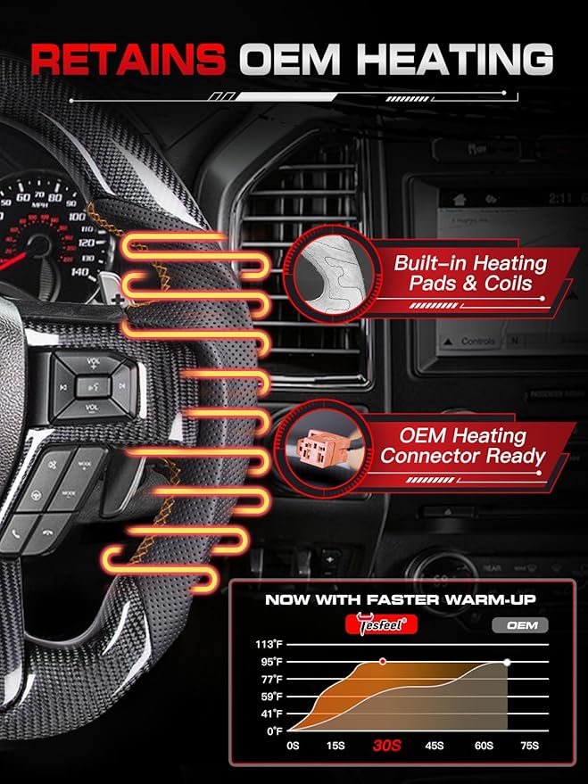 - 【Installation Caution】The carbon fiber steering wheel for F150 Raptor 2017-2020 is a direct replacement for the factory wheel. When installing, please do not forcefully pull or compress the heating wires. The wires contain resistors, and pulling or crushing them can break the resistors, rendering the heating function inoperative. Handle with care to ensure the integrity of the heating feature.