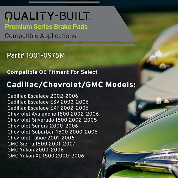 QUALITY-BUILT Premium Semi-Metallic Rear Brake Pads 1001-0975M Compatible with 2000-2007 Cadillac/Chevrolet/GMC (Avalanche 1500,Escalade,Escalade ESV,Escalade EXT,Sierra 1500,Silverado 1500,Sonora,Su)