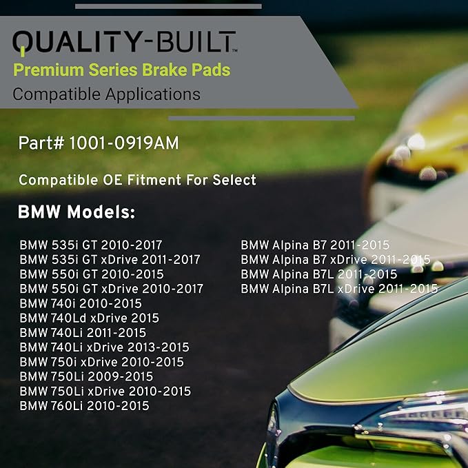 QUALITY-BUILT Premium Semi-Metallic Rear Brake Pads 1001-0919AM Compatible with 2009-2017 BMW (535i GT,535i GT xDrive,550i GT,550i GT xDrive,740i,740Ld xDrive,740Li,740Li xDrive,750i xDrive,750Li,750)