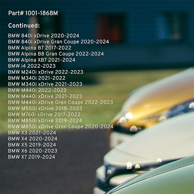 - CONFIRM FITMENT: Use the Amazon Confirmed Fit tool to verify compatibility with your vehicle. Compatible with 2016-2024 BMW (330i,430i,430i xDrive,540i,540i xDrive,740e xDrive,740i,740i xDrive,745e xDrive,750i,750i xDrive,840i,840i Gran Coupe,840i xDrive)