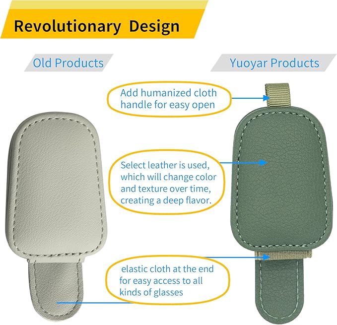 - Complete Leather Wrap: Your visor and glasses will stay intact because the automobile visor sunglasses holder is composed of high-quality leather with a soft feel that completely envelops the clip