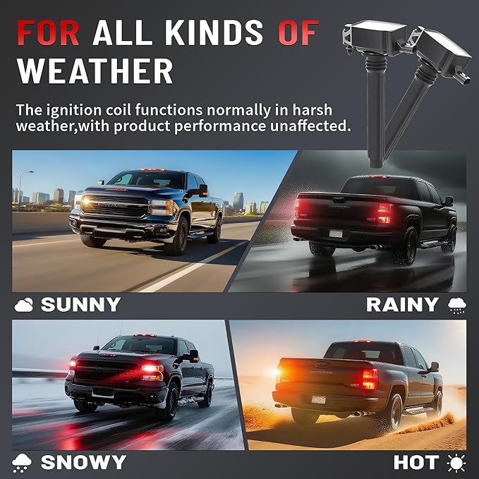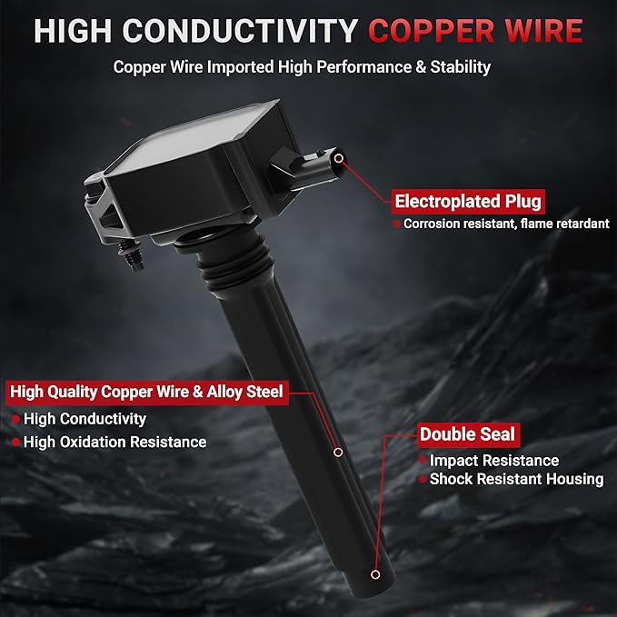 - Enhanced Coil and Spark Plug - Ignition Coils: Made with high-conductivity copper wire, high-dielectric epoxy, and premium materials, offering excellent conductivity, heat resistance, stable in extreme conditions.Spark Plugs: With iridium/double iridium electrodes and high-quality ceramics, crafted via advanced processes, boasting triple the lifespan of ordinary plugs, ensuring stable idling and efficient combustion for spark plugs and improve fuel efficiency.