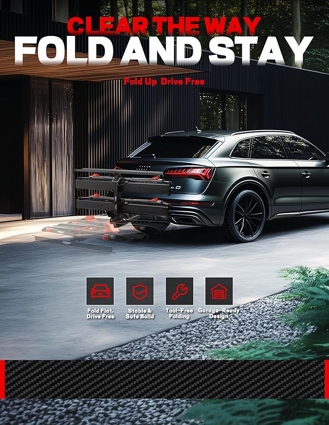 - 【User-Friendly Features】 Includes integrated loading ramp for easy bike mounting (supports heavy e-bikes) and 90° foldable design that clears your trunk space. Optional brake light compatibility (sold separately) enhances night visibility. Quick-install hitch system gets you road-ready in minutes.