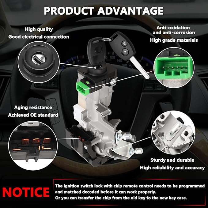 - PLEASE MAKE SURE OF THE COMPATIBLE VEHICLES BEFORE ORDERING, THANKS 【Attention】The ignition switch lock with chip remote control needs to be programmed and matched decoded before it can work properly.Non-professional or no technical support staff please do not buy
