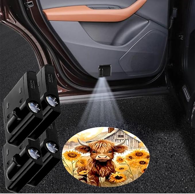 - Illuminate & Confidence: Light up safety and feel confident. cute sunflower cow car decor / sunflower cow welcome lamp car door light not only mesmerize with their eye-sunflower cowching lighting, but they also enhance your driving confidence. Car puddle light it will illuminate the surroundings to provide greater visibility when entering and exiting the vehicle, providing additional safety. No matter day or night, shadow lights for cars it makes your driving safer and more confident.