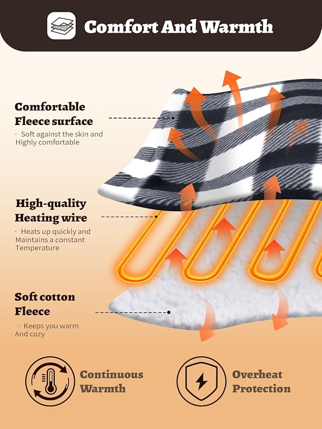 - Soft&Washable Surface:Made of fine plush material, the heated throw blanket is soft, skin-friendly, and resistant to pilling, effectively locking in heat. It supports hand washing (note: not machine washable), ensuring both comfort and durability