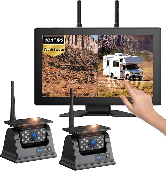 2 Portable Wireless Backup Camera for RV, 1 Min Install Solar Magnetic Camera, 10.1" Large Screen Monitor Backup Camera for Car, Auto-Sleep,DIY Guide Lines 1080P Trailer Camera for Truck,5th Wheels