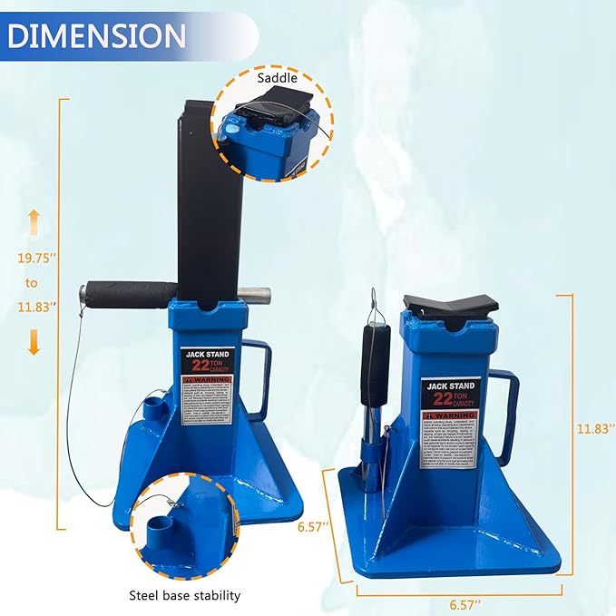 - 22-Ton Pin Jack: These automotive jack stands support up to 22 tons, providing stability for heavy-duty lifting in garages, repair shops, and DIY projects