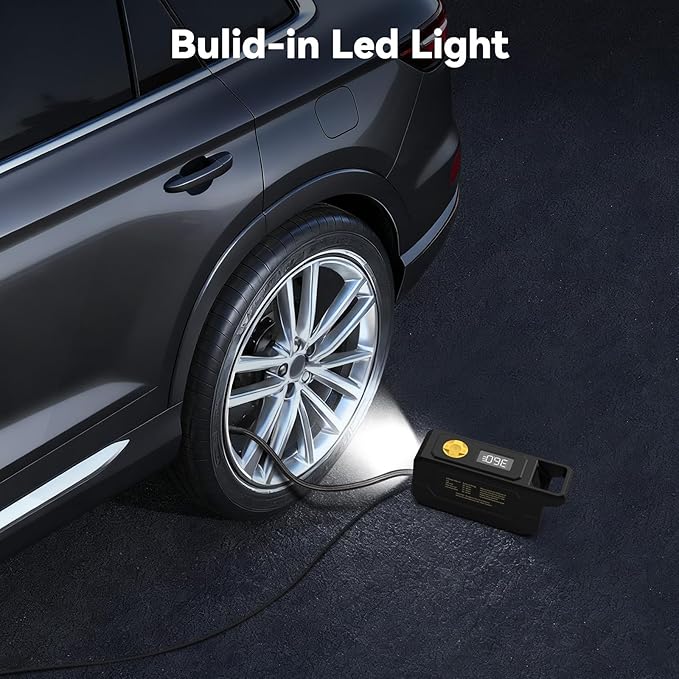 150 PSI Tire Inflator Portable Air Compressor, 12V DC Auto Shutoff Air Pump with Digital Pressure Gauge and Emergency LED Light for Car Tires, Bicycle & Balloons, Black