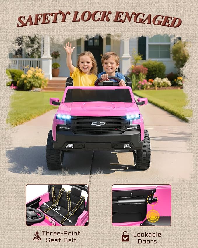- PERFECT GIFT CHOICE FOR KIDS: This licensed Chevrolet Silverado ride on car is more than a gift or toy – it’s a first step into the world of driving and adventure. Perfect for birthdays, Christmas, or any special occasion, it lets children explore, imagine, and create memories with their family. Every ride sparks their imagination, encourages shared moments, and brings warmth, laughter, and lasting memories for both children and parents.